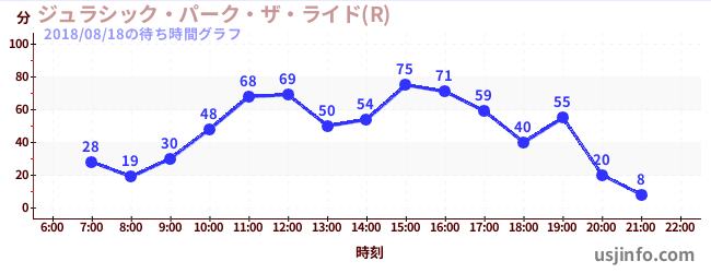 • ジュラシック・パーク・ザ・ライド(R)$B$N(B2018年08月18日の待ち時間