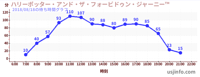 • ハリーポッター・アンド・ザ・フォービドゥン・ジャーニー™$B$N(B2018年08月18日の待ち時間