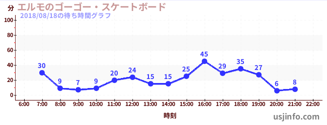 • エルモのゴーゴー・スケートボード$B$N(B2018年08月18日の待ち時間