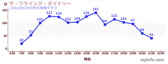 • ザ・フライング・ダイナソー$B$N(B2018年08月18日の待ち時間