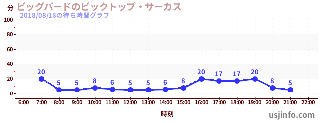 • ビッグバードのビックトップ・サーカス$B$N(B2018年08月18日の待ち時間