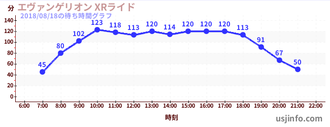 • エヴァンゲリオン XRライド$B$N(B2018年08月18日の待ち時間