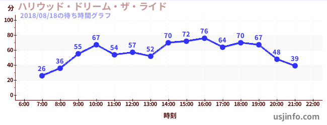 • ハリウッド・ドリーム・ザ・ライド$B$N(B2018年08月18日の待ち時間