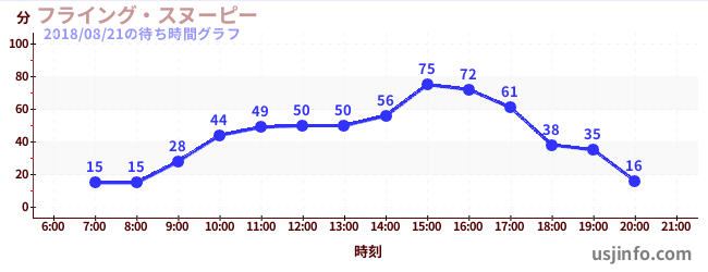 • フライング・スヌーピー$B$N(B2018年08月21日の待ち時間