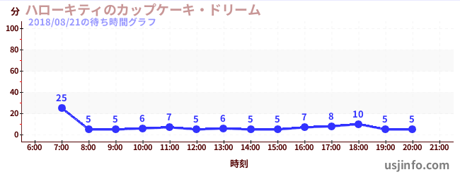 • ハローキティのカップケーキ・ドリーム$B$N(B2018年08月21日の待ち時間