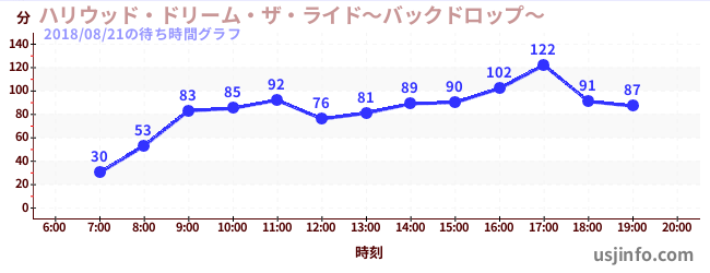 • ハリウッド・ドリーム・ザ・ライド〜バックドロップ〜$B$N(B2018年08月21日の待ち時間