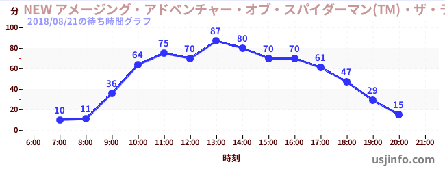 • NEW アメージング・アドベンチャー・オブ・スパイダーマン(TM)・ザ・ライド 4K3D$B$N(B2018年08月21日の待ち時間