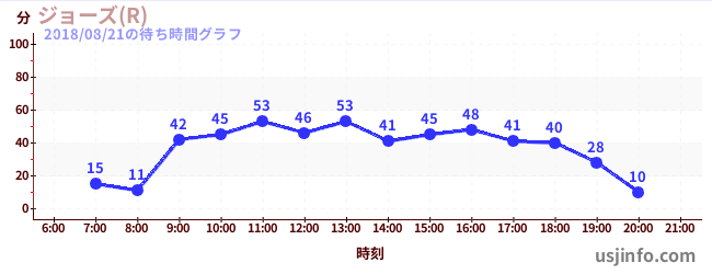 • ジョーズ(R)$B$N(B2018年08月21日の待ち時間