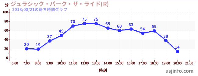 • ジュラシック・パーク・ザ・ライド(R)$B$N(B2018年08月21日の待ち時間