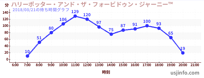 • ハリーポッター・アンド・ザ・フォービドゥン・ジャーニー™$B$N(B2018年08月21日の待ち時間