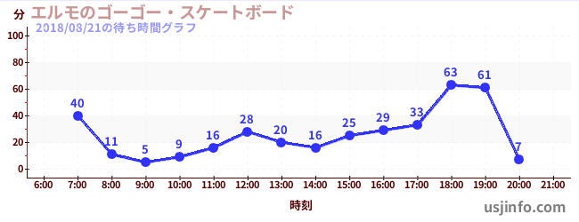 • エルモのゴーゴー・スケートボード$B$N(B2018年08月21日の待ち時間
