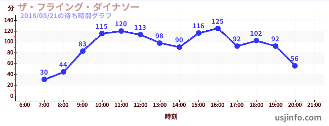 • ザ・フライング・ダイナソー$B$N(B2018年08月21日の待ち時間