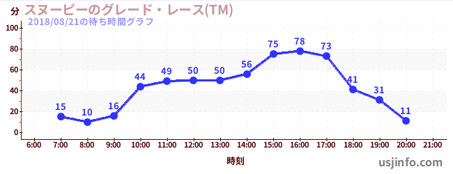 • スヌーピーのグレード・レース(TM)$B$N(B2018年08月21日の待ち時間