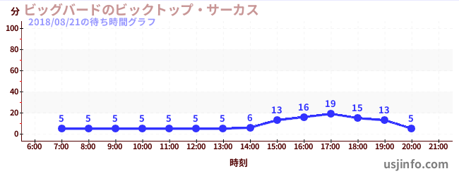 • ビッグバードのビックトップ・サーカス$B$N(B2018年08月21日の待ち時間