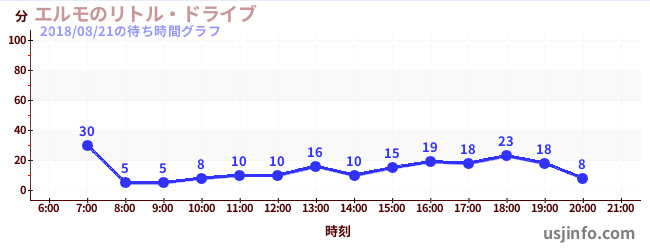 • エルモのリトル・ドライブ$B$N(B2018年08月21日の待ち時間