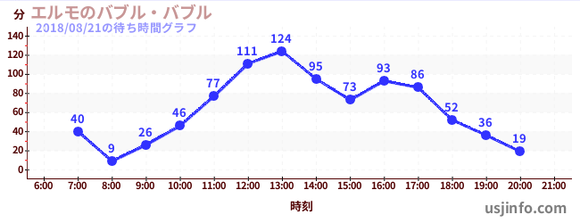 • エルモのバブル・バブル$B$N(B2018年08月21日の待ち時間