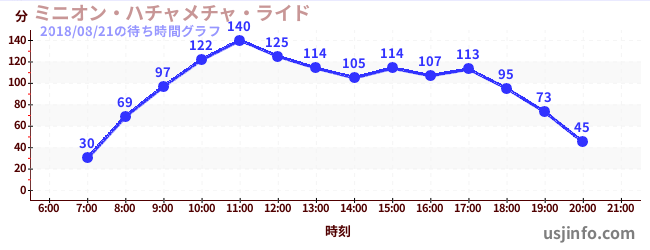 • ミニオン・ハチャメチャ・ライド$B$N(B2018年08月21日の待ち時間