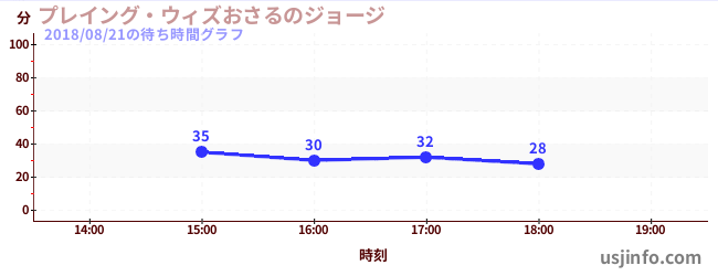 • プレイング・ウィズおさるのジョージ$B$N(B2018年08月21日の待ち時間