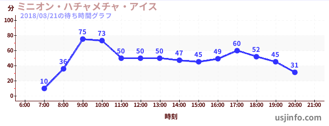 • ミニオン・ハチャメチャ・アイス$B$N(B2018年08月21日の待ち時間