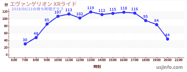 • エヴァンゲリオン XRライド$B$N(B2018年08月21日の待ち時間