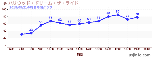 • ハリウッド・ドリーム・ザ・ライド$B$N(B2018年08月21日の待ち時間