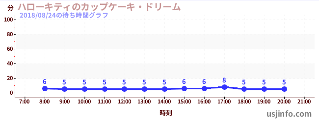 • ハローキティのカップケーキ・ドリーム$B$N(B2018年08月24日の待ち時間