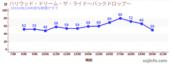 • ハリウッド・ドリーム・ザ・ライド〜バックドロップ〜$B$N(B2018年08月24日の待ち時間