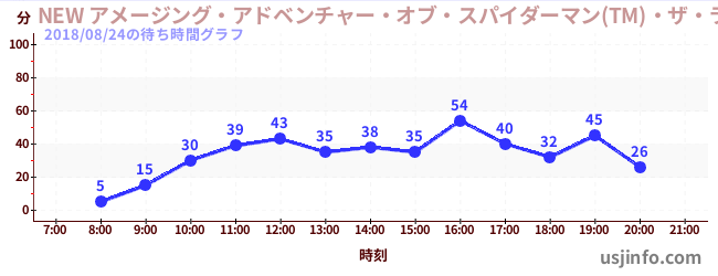 • NEW アメージング・アドベンチャー・オブ・スパイダーマン(TM)・ザ・ライド 4K3D$B$N(B2018年08月24日の待ち時間