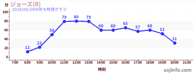 • ジョーズ(R)$B$N(B2018年08月24日の待ち時間