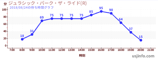 • ジュラシック・パーク・ザ・ライド(R)$B$N(B2018年08月24日の待ち時間