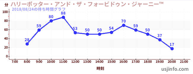 • ハリーポッター・アンド・ザ・フォービドゥン・ジャーニー™$B$N(B2018年08月24日の待ち時間