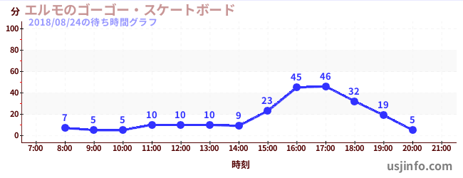 • エルモのゴーゴー・スケートボード$B$N(B2018年08月24日の待ち時間