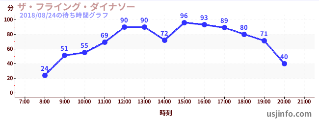 • ザ・フライング・ダイナソー$B$N(B2018年08月24日の待ち時間