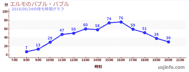 • エルモのバブル・バブル$B$N(B2018年08月24日の待ち時間