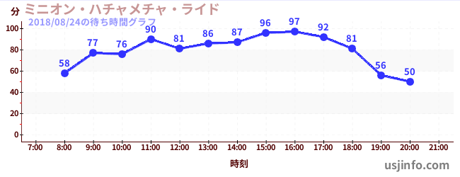 • ミニオン・ハチャメチャ・ライド$B$N(B2018年08月24日の待ち時間