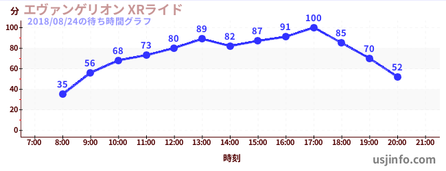 • エヴァンゲリオン XRライド$B$N(B2018年08月24日の待ち時間
