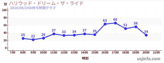 • ハリウッド・ドリーム・ザ・ライド$B$N(B2018年08月24日の待ち時間