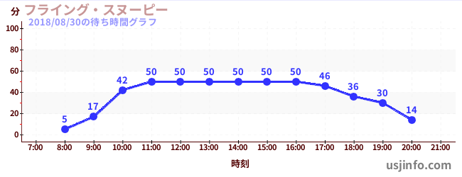 • フライング・スヌーピー$B$N(B2018年08月30日の待ち時間