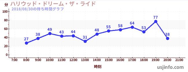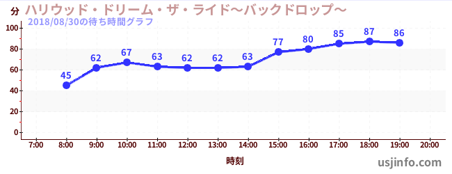 • ハリウッド・ドリーム・ザ・ライド〜バックドロップ〜$B$N(B2018年08月30日の待ち時間