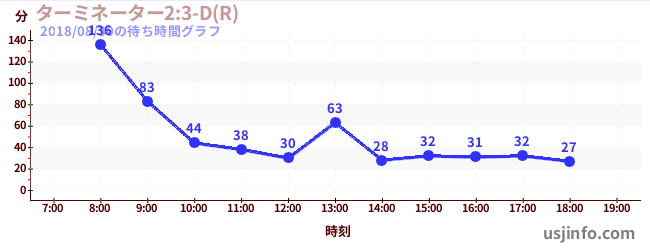 • ターミネーター2:3-D(R)$B$N(B2018年08月30日の待ち時間