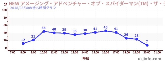 • NEW アメージング・アドベンチャー・オブ・スパイダーマン(TM)・ザ・ライド 4K3D$B$N(B2018年08月30日の待ち時間