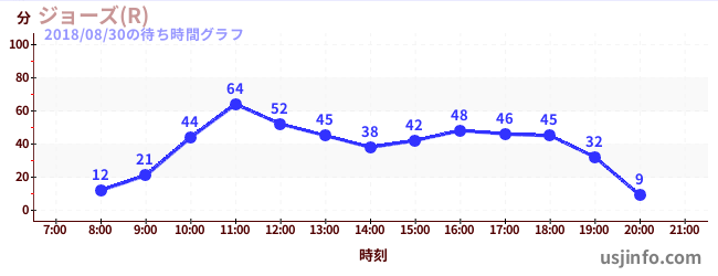 • ジョーズ(R)$B$N(B2018年08月30日の待ち時間
