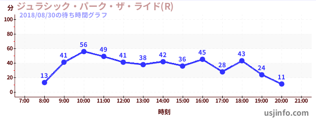 • ジュラシック・パーク・ザ・ライド(R)$B$N(B2018年08月30日の待ち時間