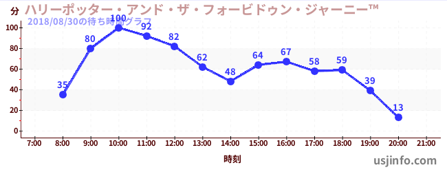 • ハリーポッター・アンド・ザ・フォービドゥン・ジャーニー™$B$N(B2018年08月30日の待ち時間