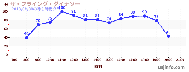 • ザ・フライング・ダイナソー$B$N(B2018年08月30日の待ち時間