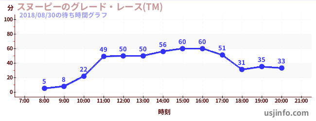 • スヌーピーのグレード・レース(TM)$B$N(B2018年08月30日の待ち時間