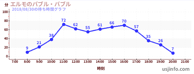 • エルモのバブル・バブル$B$N(B2018年08月30日の待ち時間