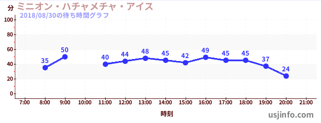 • ミニオン・ハチャメチャ・アイス$B$N(B2018年08月30日の待ち時間