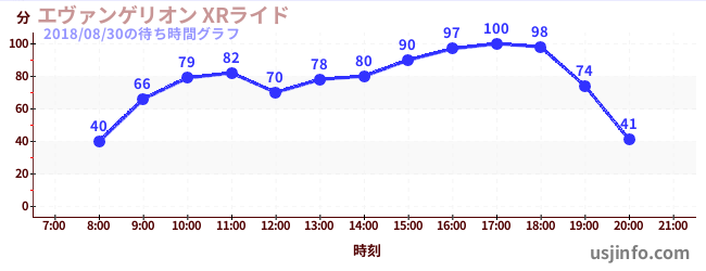 • エヴァンゲリオン XRライド$B$N(B2018年08月30日の待ち時間