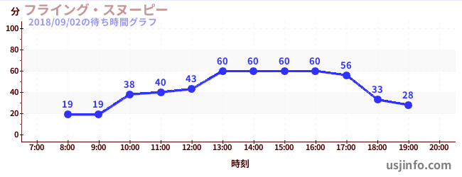 • フライング・スヌーピー$B$N(B2018年09月02日の待ち時間